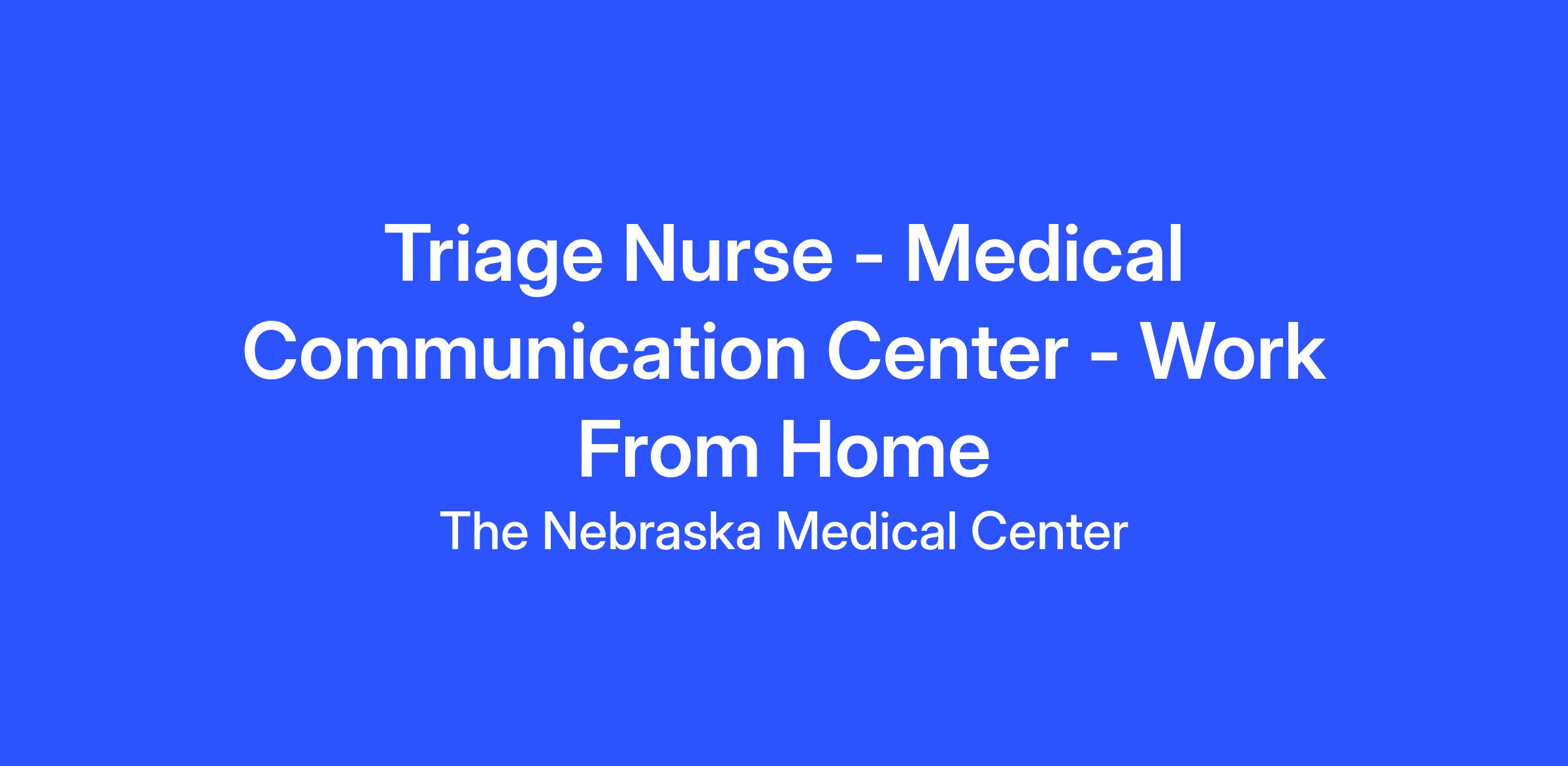 Nebraska Medicine is seeking an experienced Triage RN to join the Medical Communication Team, this role is located in Omaha, NE. This position has the opportunity to be able to work from home after in-office training (6-12 weeks). Orientation consists of first shift/daytime hours (7AM - 5PM). The Triage RN will be responsible for telephone triage, care coordinator, and patient education focused on providing exceptional care through multidisciplinary collaboration.