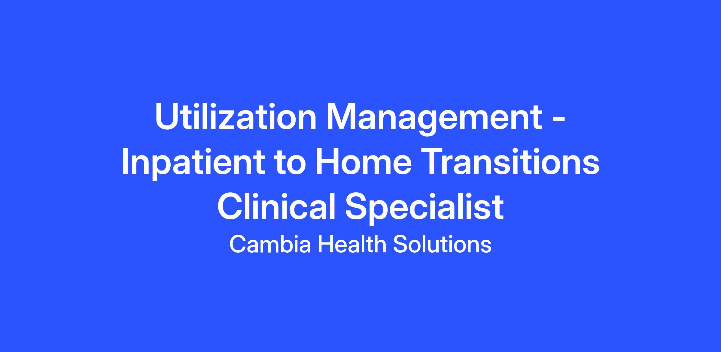 Every day, Cambia's dedicated team of Clinical Specialists are living to make health care easier and lives better. As a member of the Clinical team, our Clinical Specialists receive, research, and take action related to documentation and requests from a variety of sources related to Inpatient Utilization Management (UM) cases.