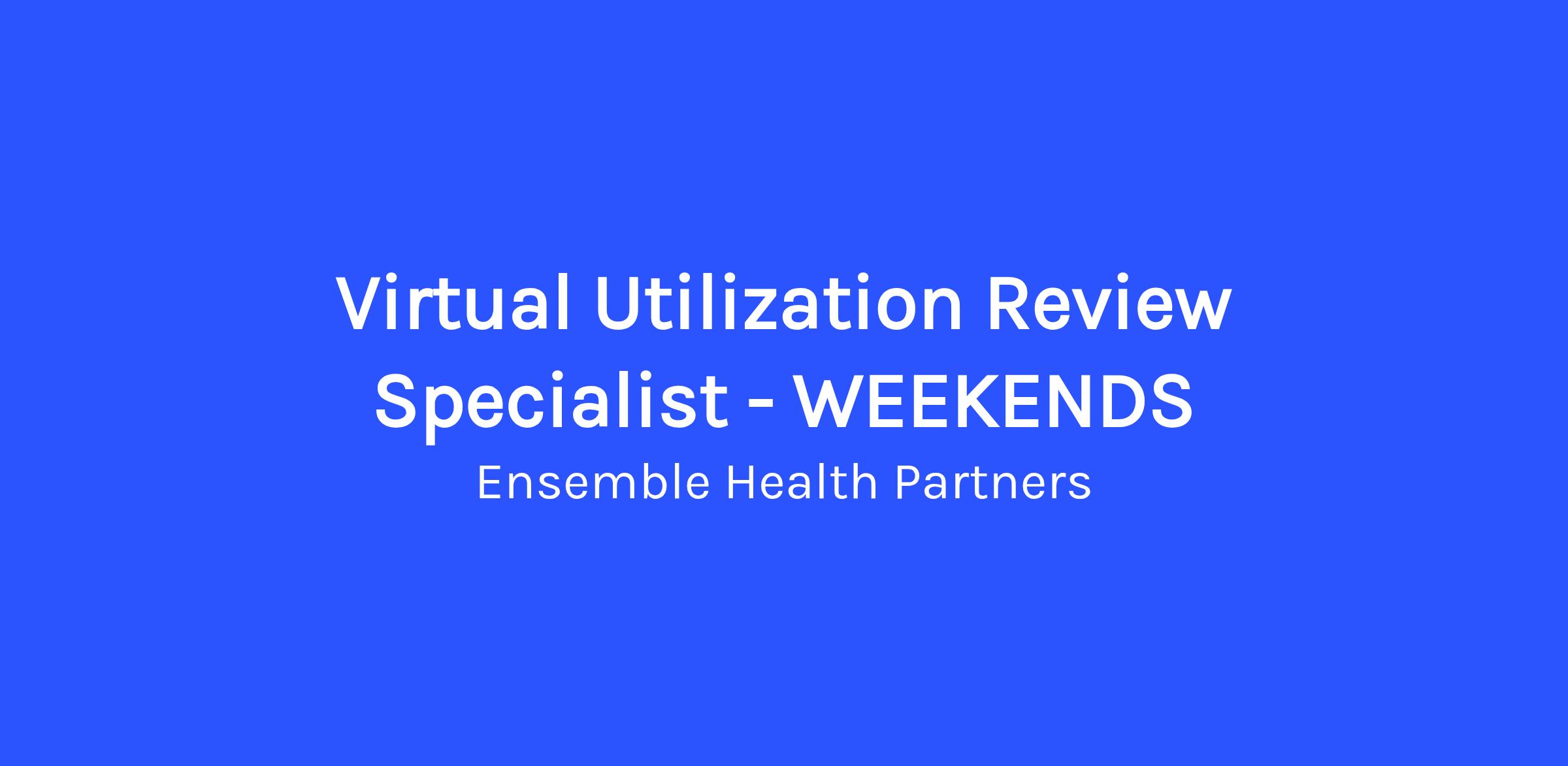 We are seeking Virtual Utilization Review Specialists who are interested in compressed, weekend work schedules. The schedules we are offering include: