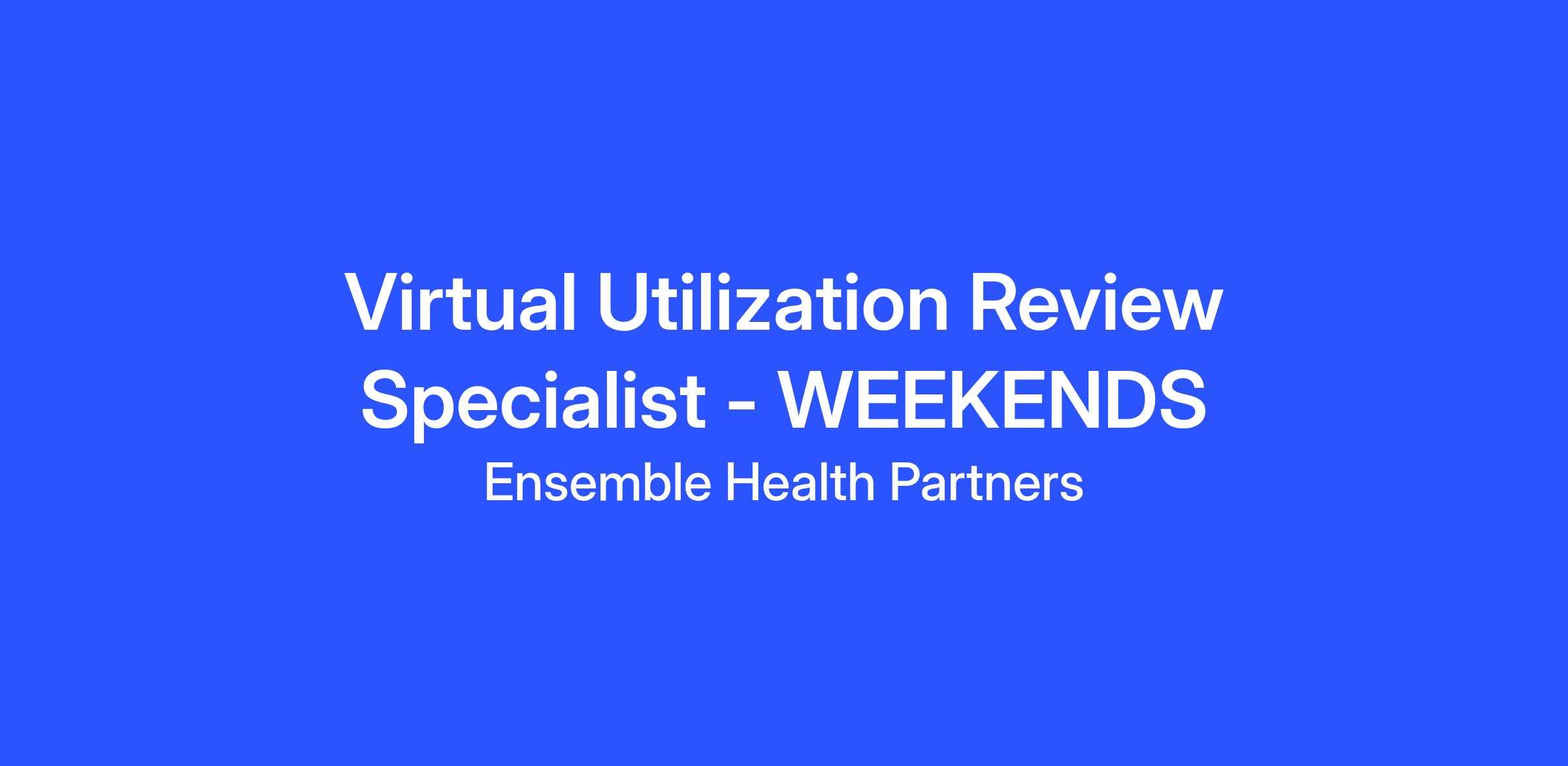 We are seeking Virtual Utilization Review Specialists who are interested in compressed, weekend work schedules. The schedules we are offering include:
