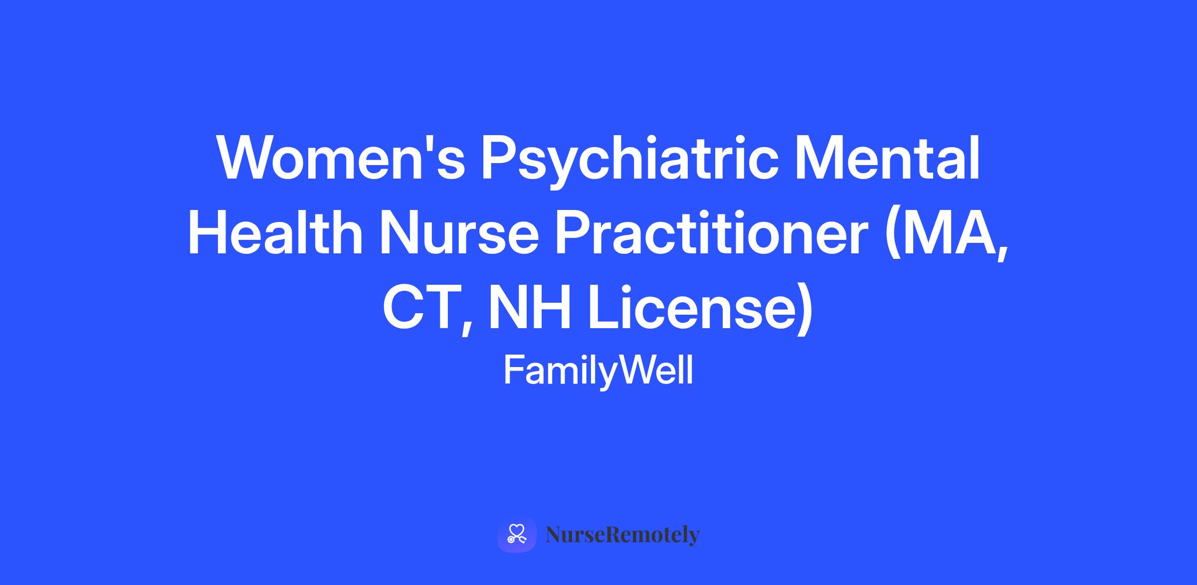 Women's Psychiatric Mental Health Nurse Practitioner (MA, CT, NH License)